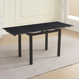 - Tavolo allungabile piano in ceramica effetto marmo ardesia nero opaco.