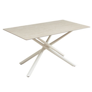 Tavolo da pranzo piano in ceramica beige opaco struttura in metallo bianco 160x90 cm - Sand