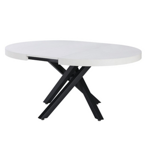 Tavolo da pranzo rotondo allungabile piano in mdf bianco e base in metallo - Ravem