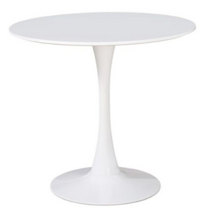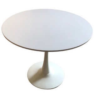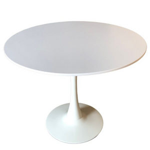 - Base in metallo verniciato e piano in Mdf bianco.