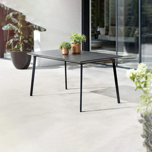 Il design moderno del tavolo "Iron" si esprime attraverso linee pulite e una forma rettangolare, adattandosi facilmente a vari contesti di arredamento, che si tratti di un giardino, un patio o una sala da pranzo interna.