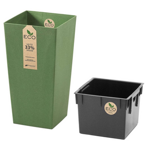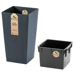 Il vaso alto "Eco" è un'innovativa soluzione ecologica per piante o fiori, realizzato con un mix di polipropilene al 67% e scarti di legno al 33%. Questo materiale ibrido offre una combinazione di resistenza, durabilità e sostenibilità.