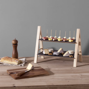 Un connubio perfetto di eleganza e funzionalità, il Vassoio da Portata a 2 Livelli in Ardesia e Bambù è l'accessorio ideale per presentare i tuoi piatti con stile.